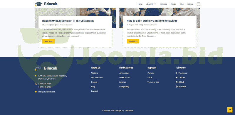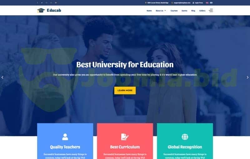 Educab is an exclusive Joomla for courses, school, university or college Education Joomla Template designed for educational institutions. It comes with beautiful color style – each carefully crafted for an education Joomla theme, course e-learning, events components, gallery and quickstart package to get you up and running fast.