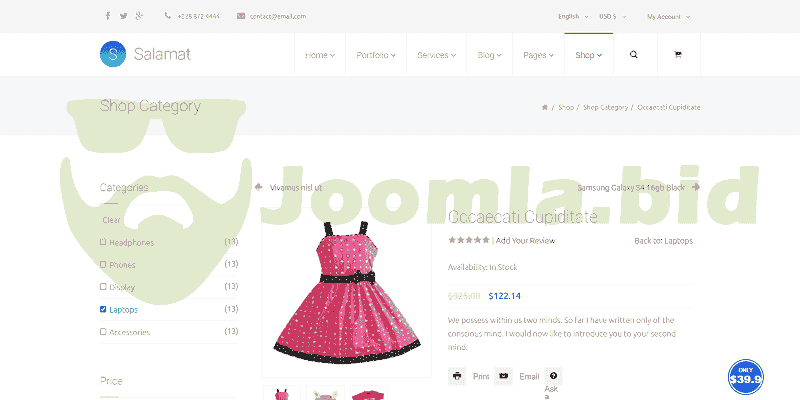 Salamat is a flexible and unique multi-purpose business Joomla Template with e-commerce features. It's ideal template for any agency like creative design agency, web development agency, PR agency, fashion agency, as a template for startup company or well established company. It would also look great for product or service landing page or product microsite.
