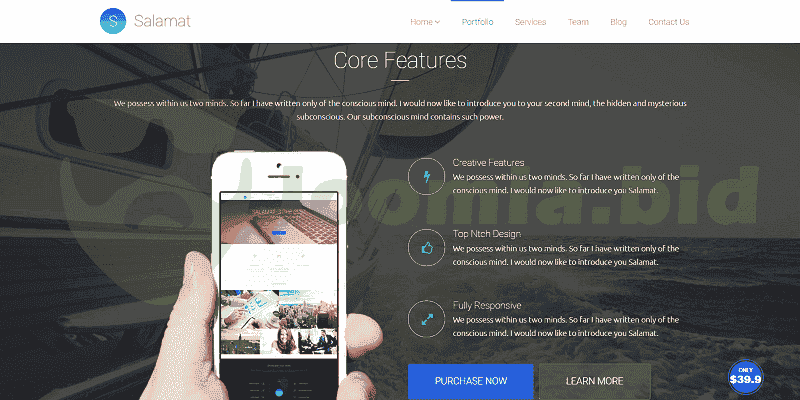 2. 3 Home Page Layout: Salamat comes with 3 beautiful home pages. It's ideal template for any agency like creative design agency, web development agency, PR agency, fashion agency, as a template for startup company or well established company.